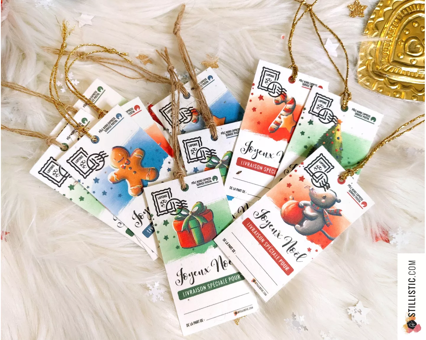 Vous pourrez personnaliser chaque étiquette en y inscrivant le nom du destinataire et de l'expéditeur,