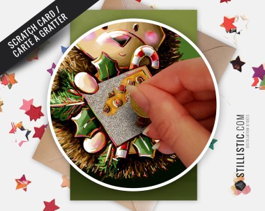 Carte de voeux papier 350g à gratter avec Illustration Originale Hérisson Noël Fêtes fin d'année