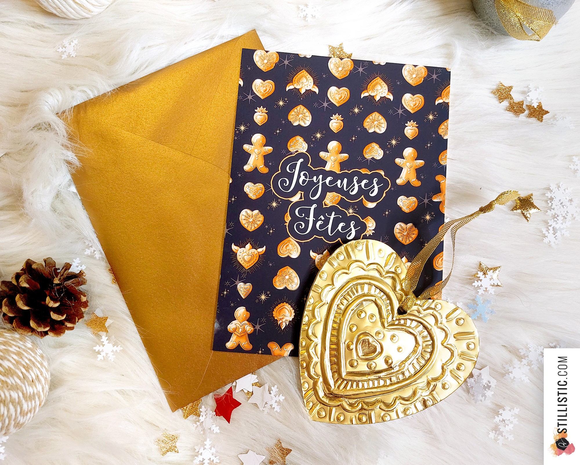 - d'une carte de voeux épaisse grand format 127mm x 178mm ornée d'un motif Stillistic et du message "Joyeuses Fêtes"