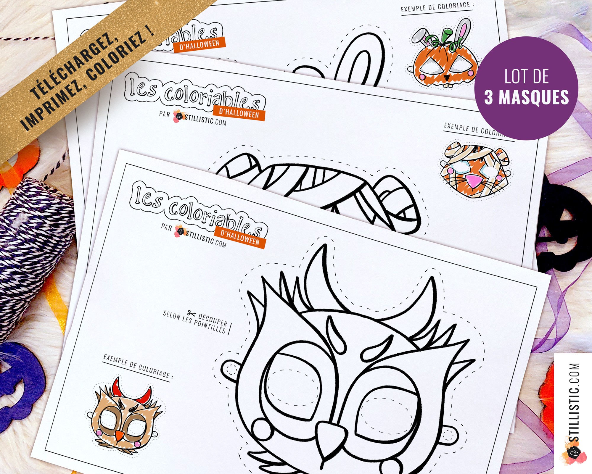 Masques pour enfant sur le thème d'Halloween au format numérique à télécharger, imprimer et colorier !