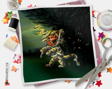 Coupon illustré Halloween Tigre momie tissu coton ou minky sans substances nocives, 15x15cm ou 20x20cm