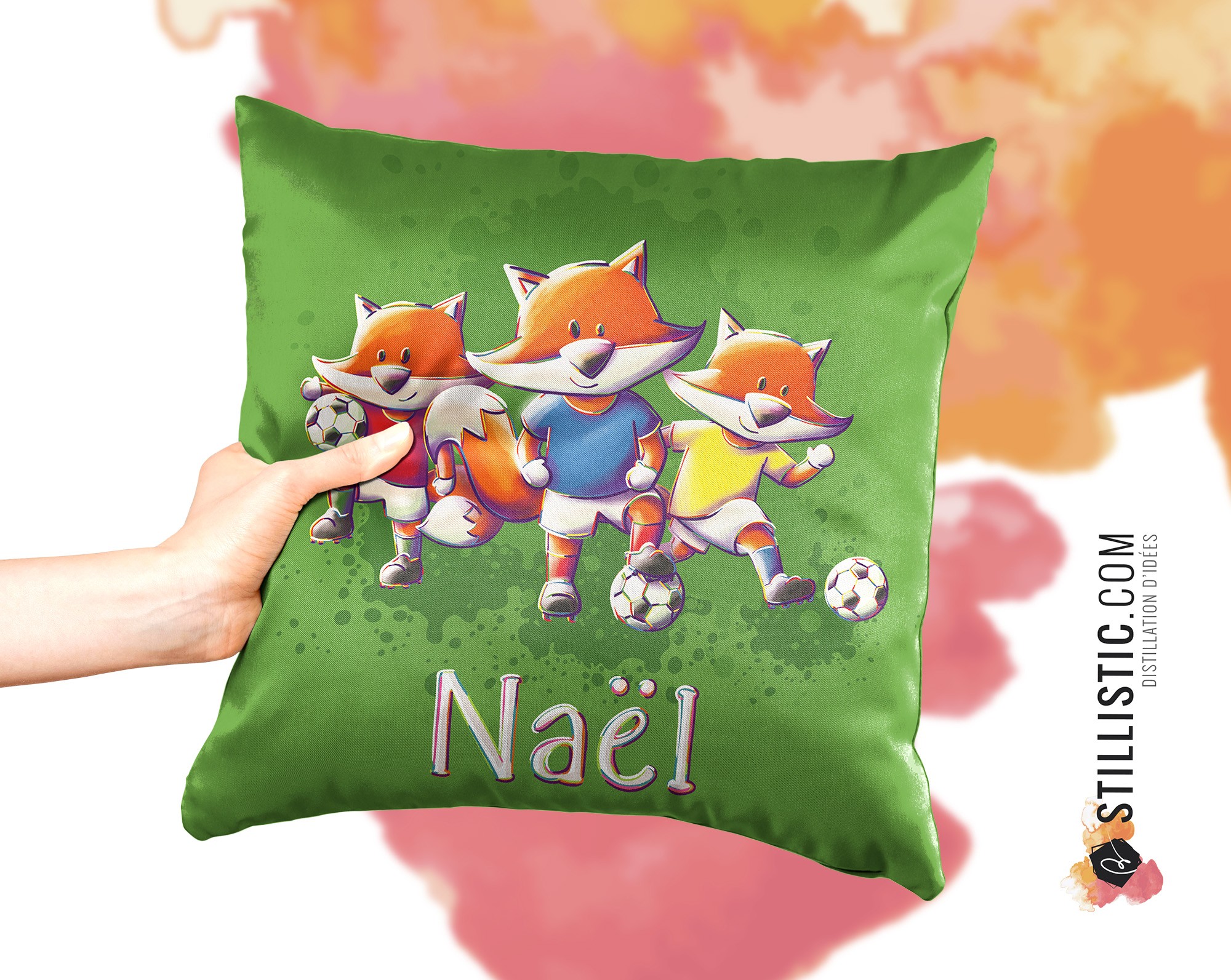 Coupon tissu Coussin de naissance Renards Football Sans substances nocives à découper et coudre (sur commande)