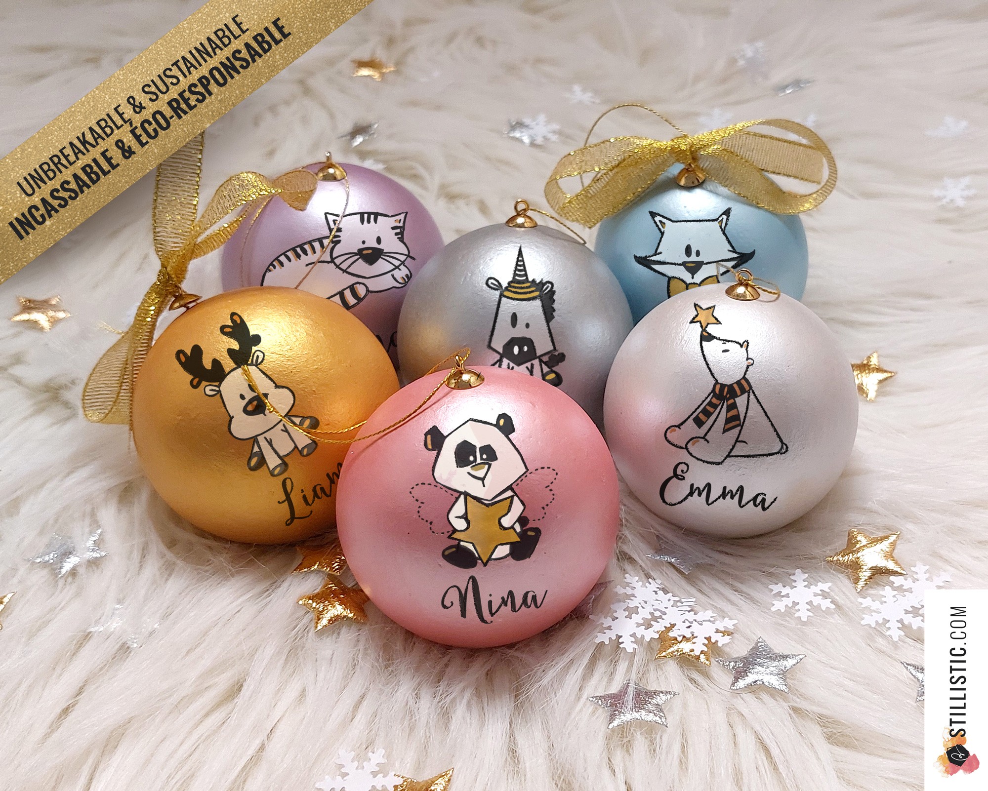 En option, Possibilité de personnaliser la boule avec un prénom.
