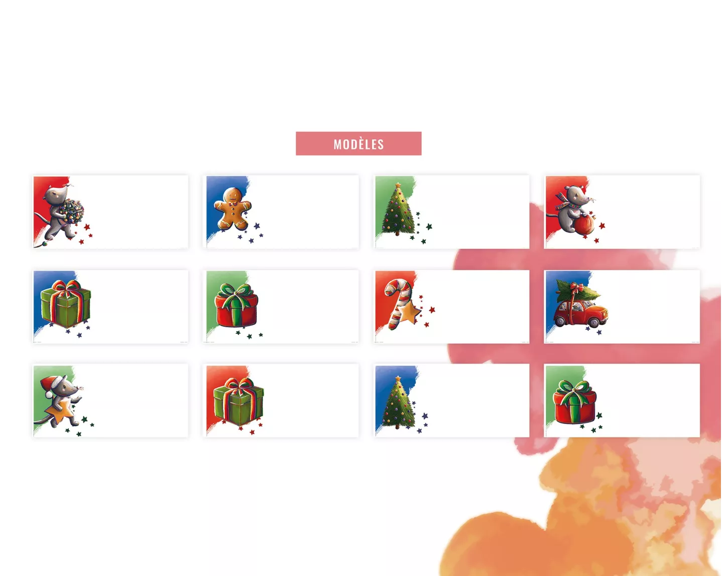 Une planche de 12 marque-places / chevalets de table festifs ornées de petits Souris de Noël (illustrations originales Stillistic) à télécharger au Format PDF et imprimer chez vous pour ajouter une touche finale et originale à vos décos de tables de Noël !