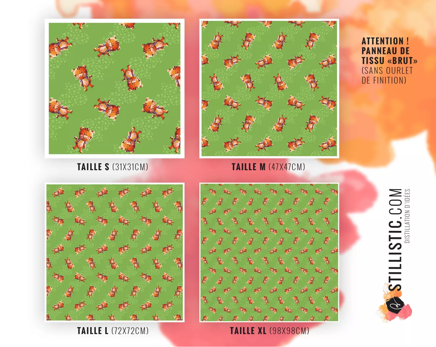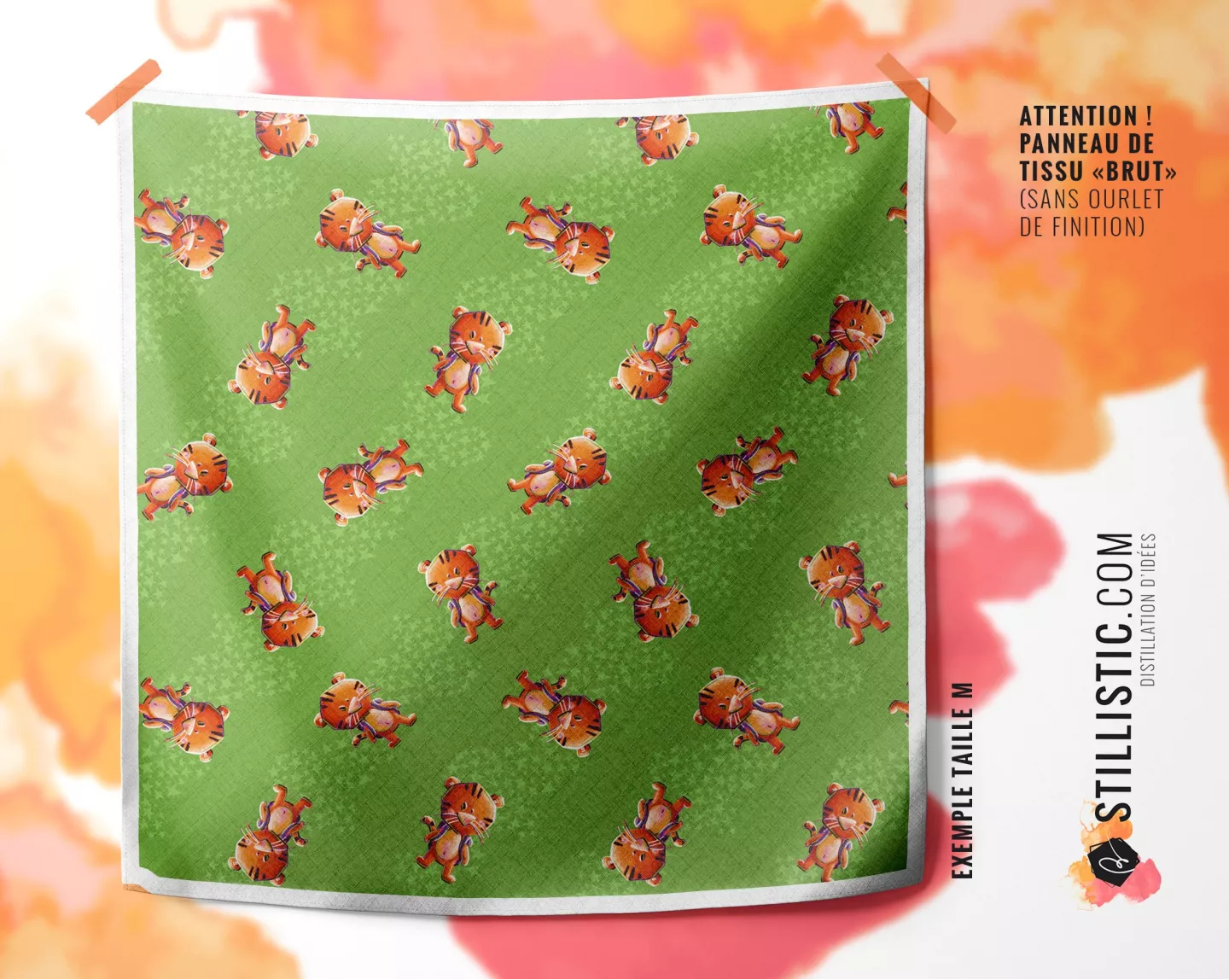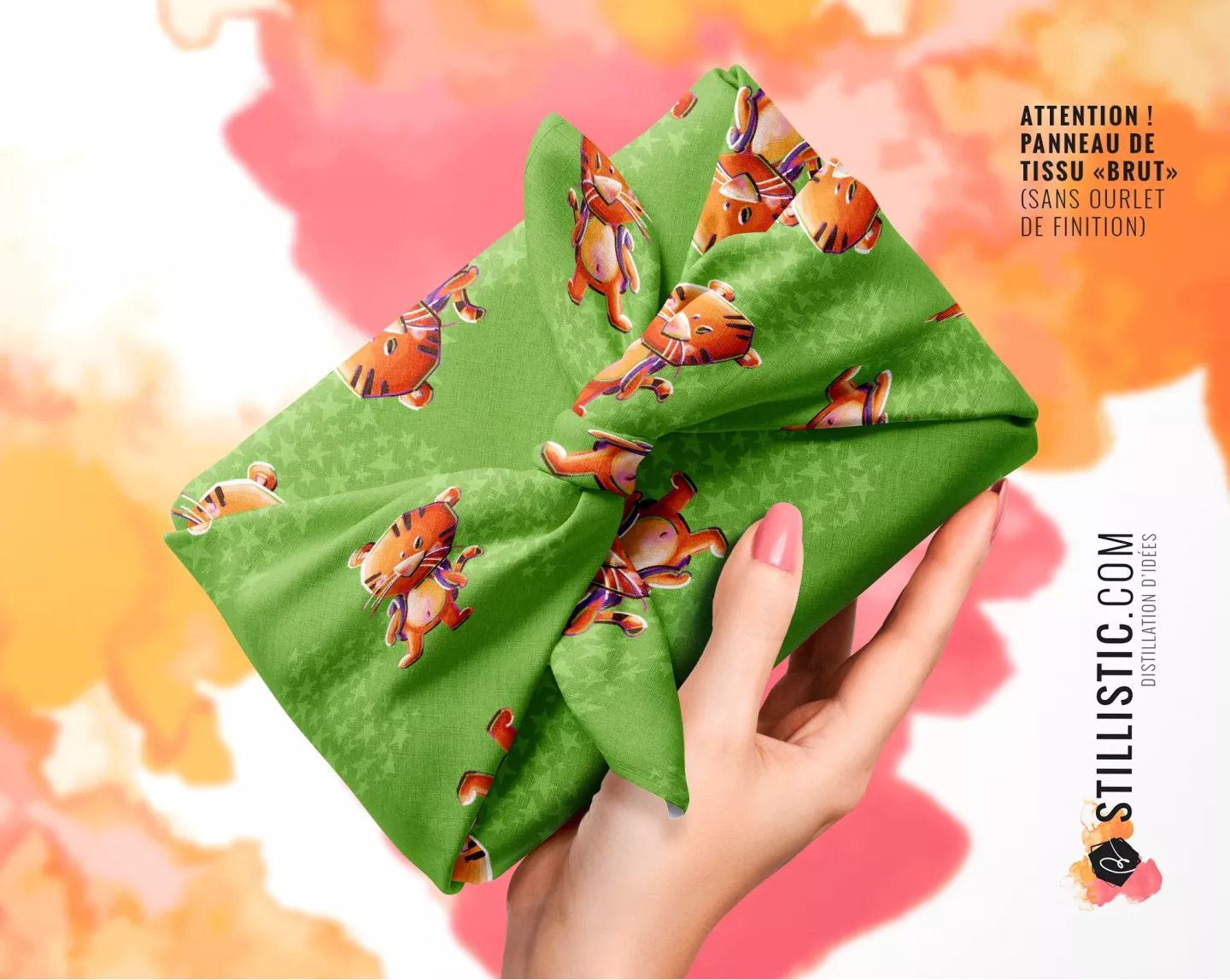 Coupon furoshiki à coudre en tissu coton motif bébé tigre pour emballage cadeau éco-responsable, réutilisable et durable.