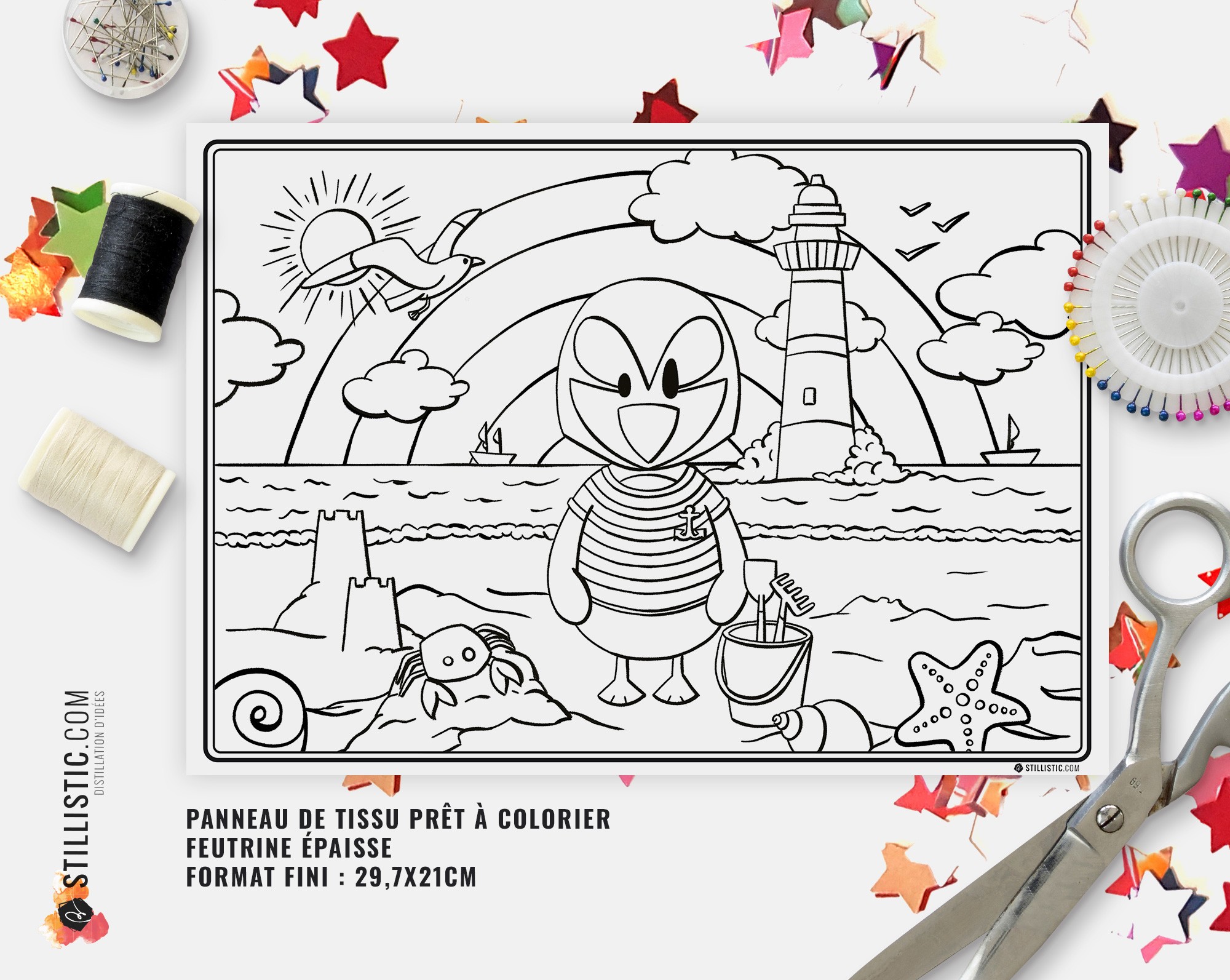 Coupon tissu coton ou feutrine Sans substances nocives à couper et à coudre pour Set de table Macareux Marin à colorier fait maison