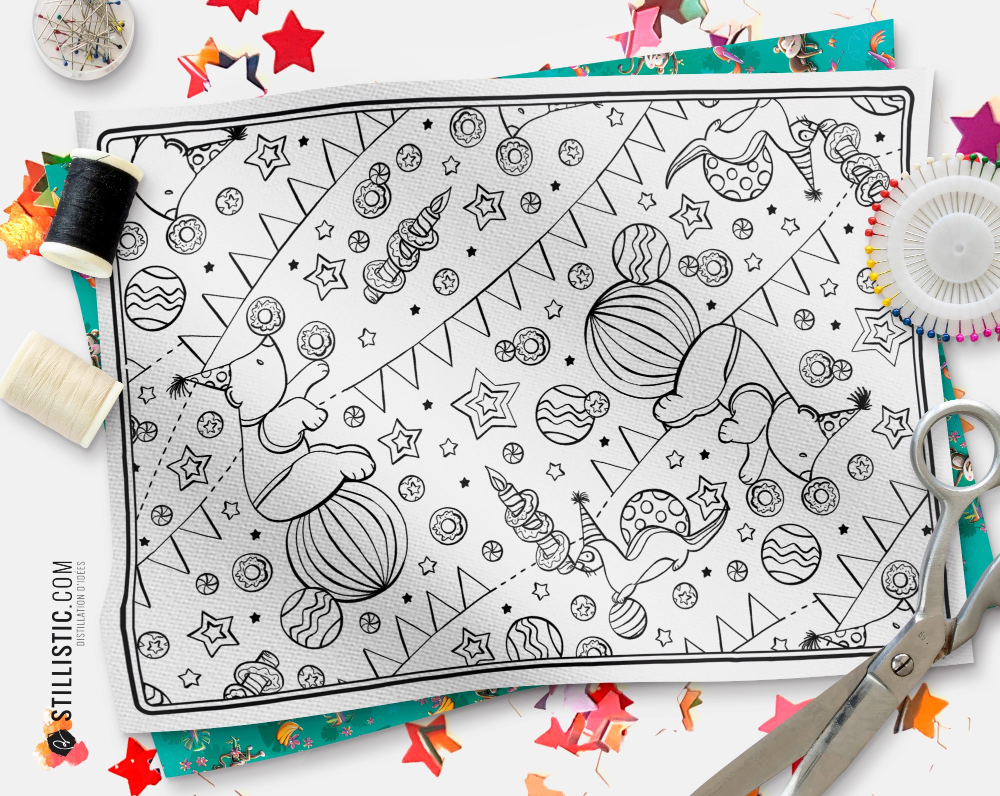 Fabriquez vous-même un set de table coloriable et lavable (coton seulement) pour votre enfant grâce à ce panneau de tissu pré-imprimé !