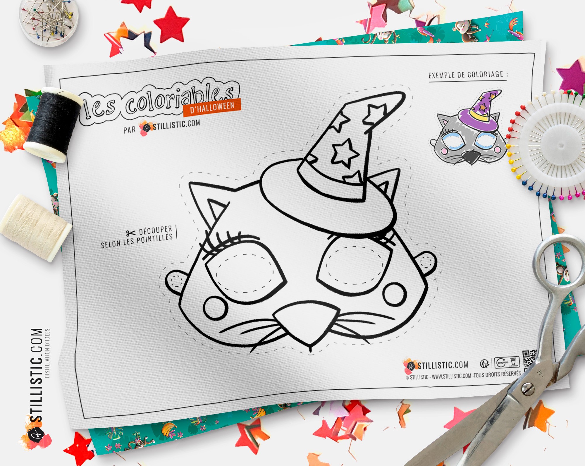 Motif Chat Magicien - A découper et à colorier !
