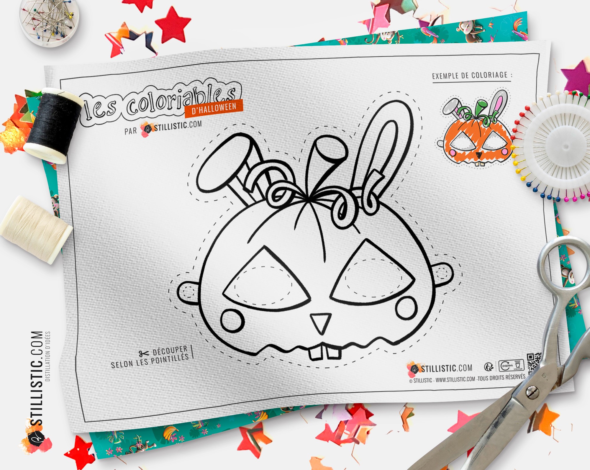 Motif Lapin Citrouille Halloween - A découper et à colorier !